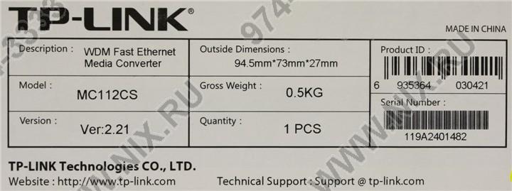 | Тип оборудования | Медиаконвертер | ||