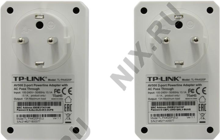 | Краткое наименование | Адаптер Powerline TP-LINK TL-PA4020PKIT |